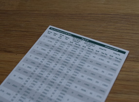 Mini Tap And Drill Chart With Clearance Hole Sizes Etsy
